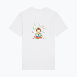 Ta bluza to ciepły kokon dziecięcej wyobraźni – otulający, przyjazny, lekki, a zarazem solidny. Ilustracja chłopca zapatrzonego w unoszące się bańki mydlane opowiada historię o zachwycie nad światem i o wolności, którą daje bycie sobą – bez pośpiechu, bez ocen, z otwartym sercem.