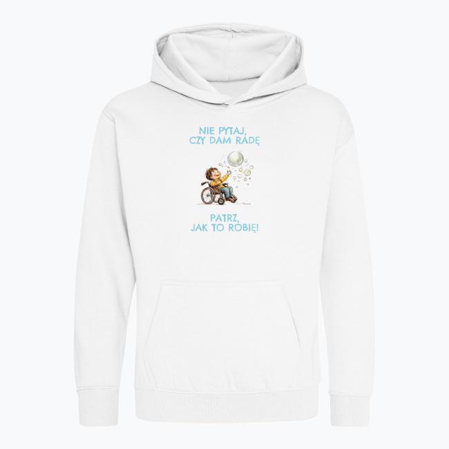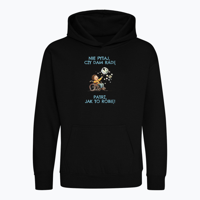 „Nie pytaj, czy dam radę. Patrz, jak to robię!” – te słowa na bluzie to nie tylko mocny komunikat, ale też wyraz dziecięcej siły i odwagi. Ten projekt powstał z myślą o wszystkich dzieciach, które mierzą się z codziennymi wyzwaniami z uśmiechem, pasją i wewnętrzną mocą, której nie widać na pierwszy rzut oka.