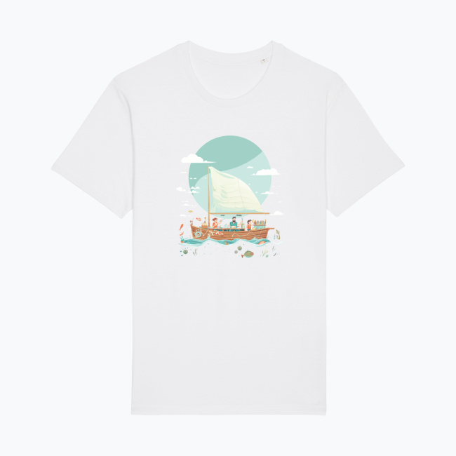 Ta koszulka to coś więcej niż ubranie. To znak przynależności do załogi, która wierzy, że edukacja może być przygodą — pełną śmiechu, bliskości i odwagi. Ilustracja z rodziną na pokładzie żaglowca symbolizuje codzienne rejsy przez morze wiedzy. Nauczyciel staje się kapitanem, rodzic — sternikiem, a dzieci to mali odkrywcy, którzy płyną ku nowym lądom: kreatywności, empatii i samodzielnego myślenia.